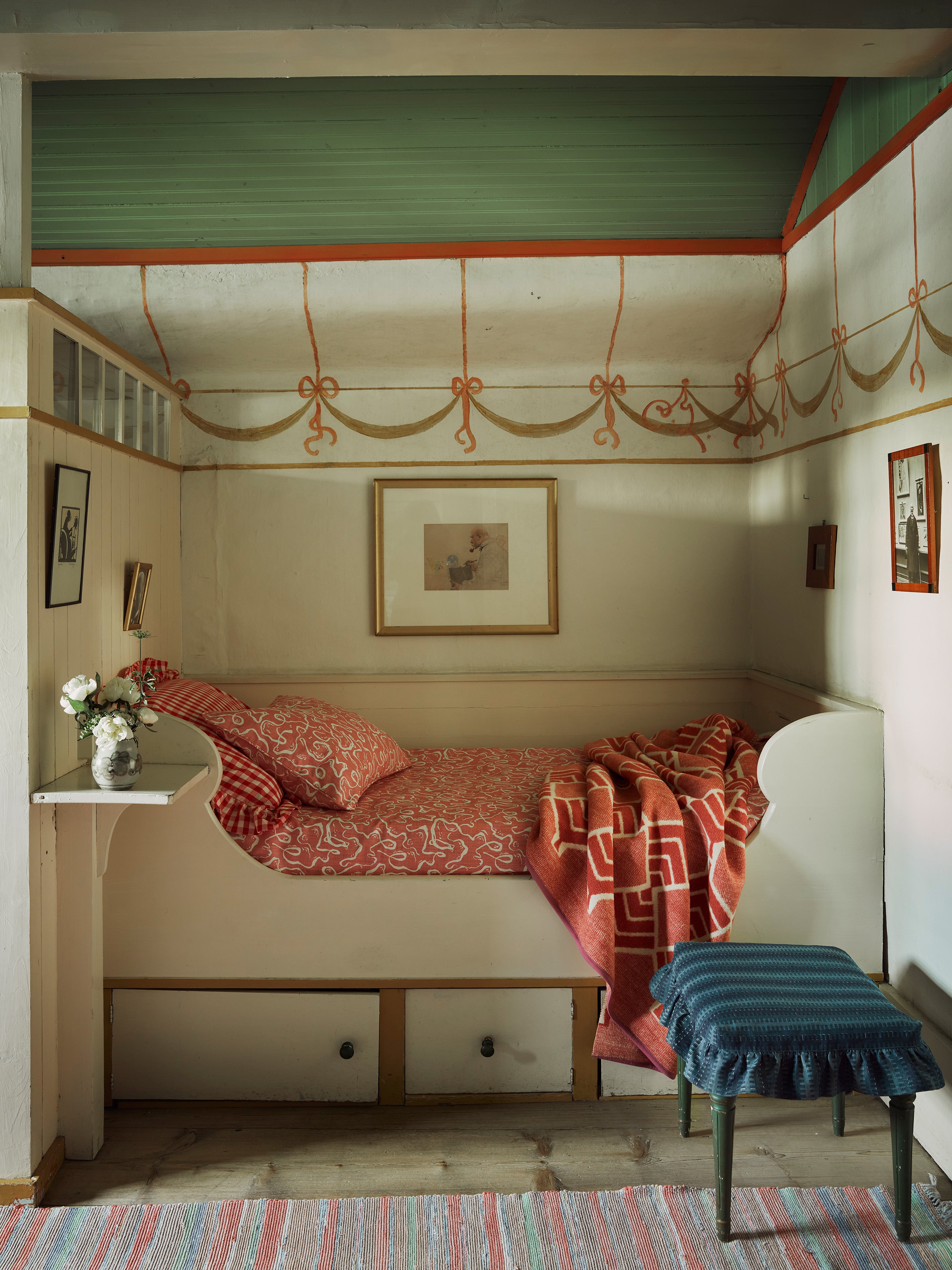"Karin Larsson’s textiles were unique, often characterized by curiosity, innovation, and an openness to blending traditional techniques and new trends. She mixed traditional Swedish embroidery with techniques from all over the world. Both Karin and Carl were inspired by Japan and you can find Japanese influences all over the house. This, combined with interior decoration that is considered so typically Swedish, makes Lilla Hyttnäs the most unexpected, amazing and inspiring house I have ever been too."