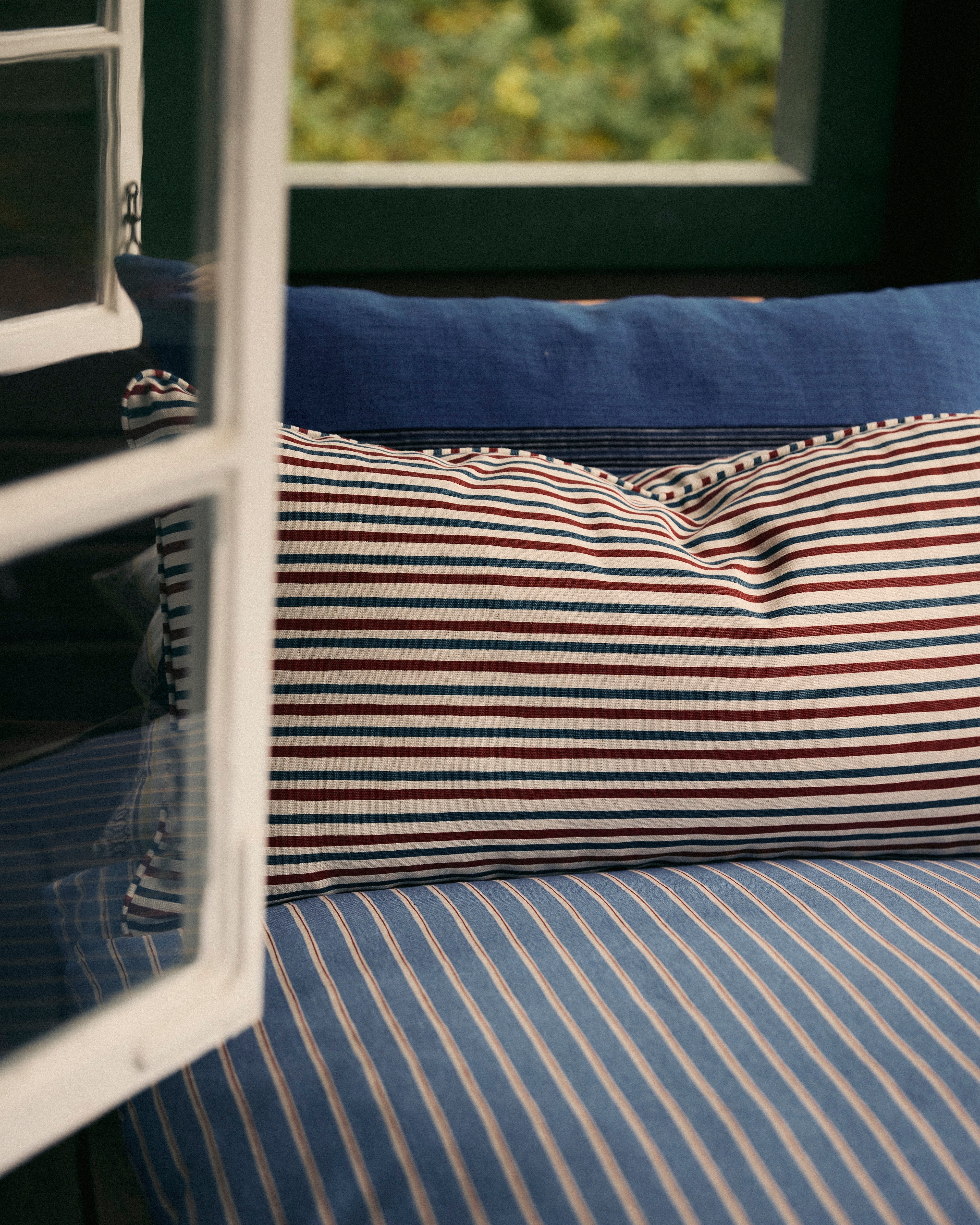 Each one of our cushions is unique, handmade by Swedish seamstresses at Yalla Trappan in Malmö. Dimensions and pattern placement may vary.