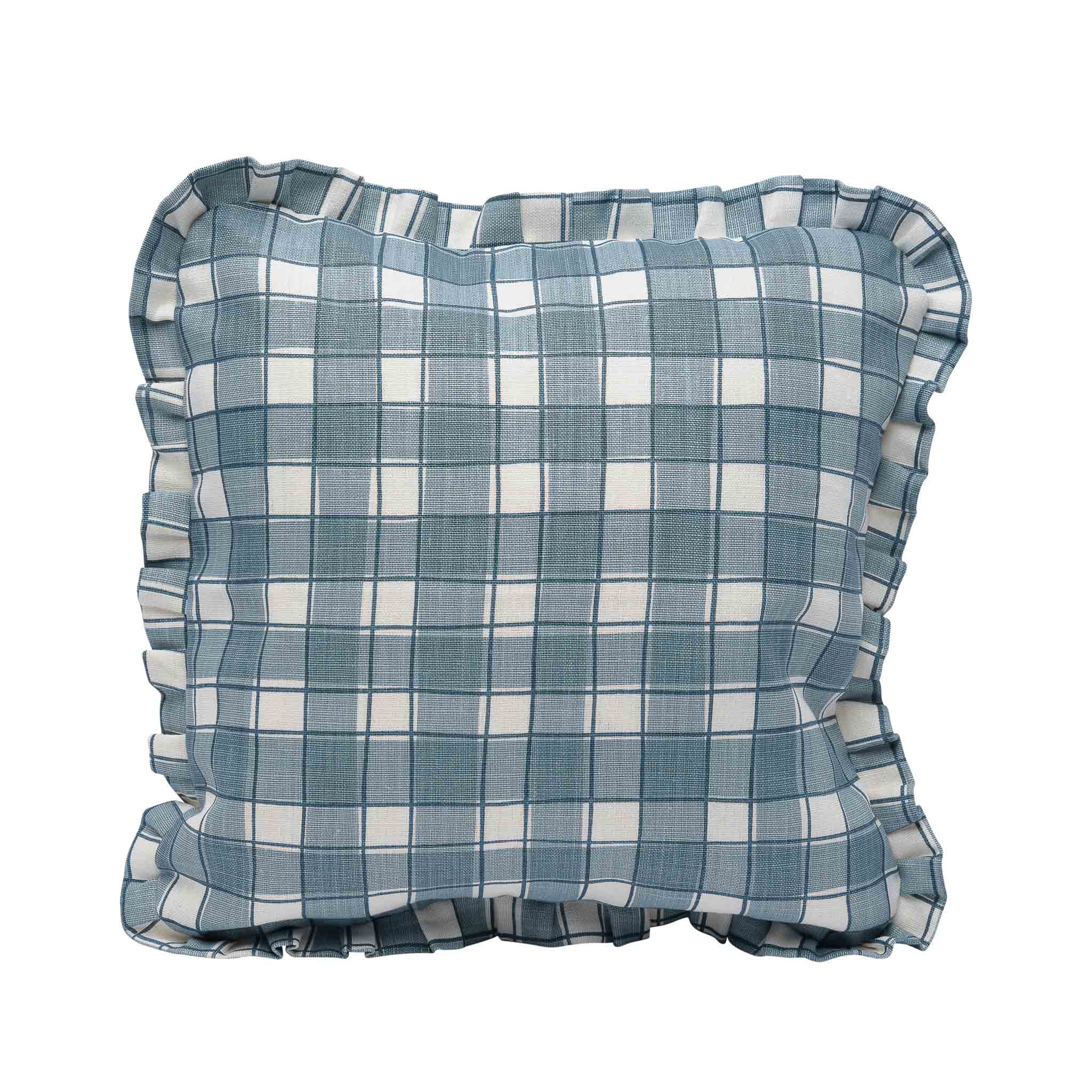Gingham Blue Cushion Cover - Ruffles - 50x50cm