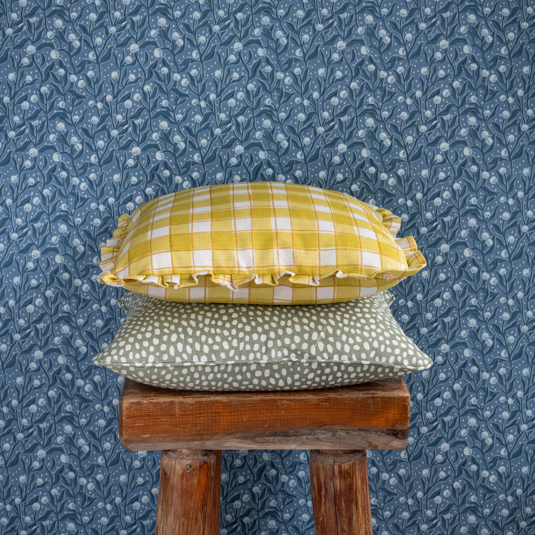 Each one of our cushions is unique, handmade by Swedish seamstresses at Yalla Trappan in Malmö. Dimensions and pattern placement may vary. Hand printing means that print joints can sometimes be seen on the finished fabric. We call these the maker's mark and it is a natural characteristic for the handicraft. On our Spotty cushions this mark can sometimes be more visible in the shape of a faint line. We believe this adds to the charm and hand made quality of the print.